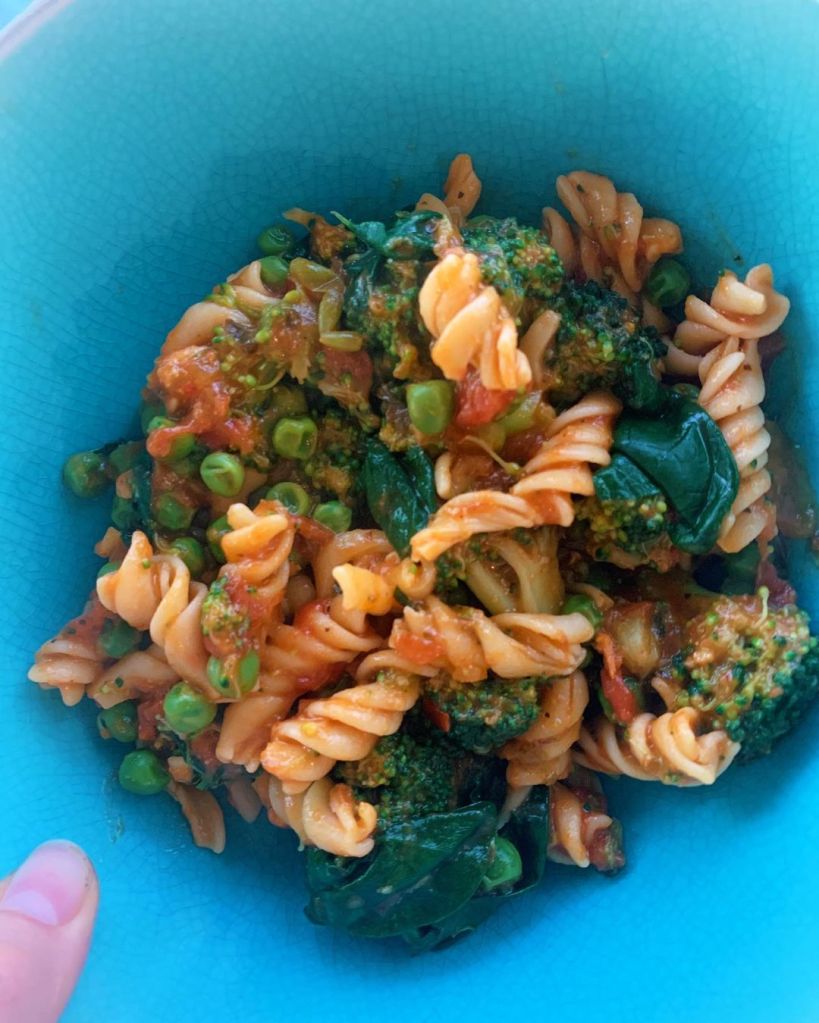 Easy weeknight meal. One of my go-to plant-based dinners (I get three-four meals out of this, so great for meal prep!) where you get a healthy dose of carbs and veggies ❤️I’m a huge fan of meat (eat tons of chicken, turkey, fish, eggs), so this is a nice plant-based break from my typical meals. This is actually vegan but I have made it vegetarian. You can also add in ground meat if you’d like! Just up your sauce amount.